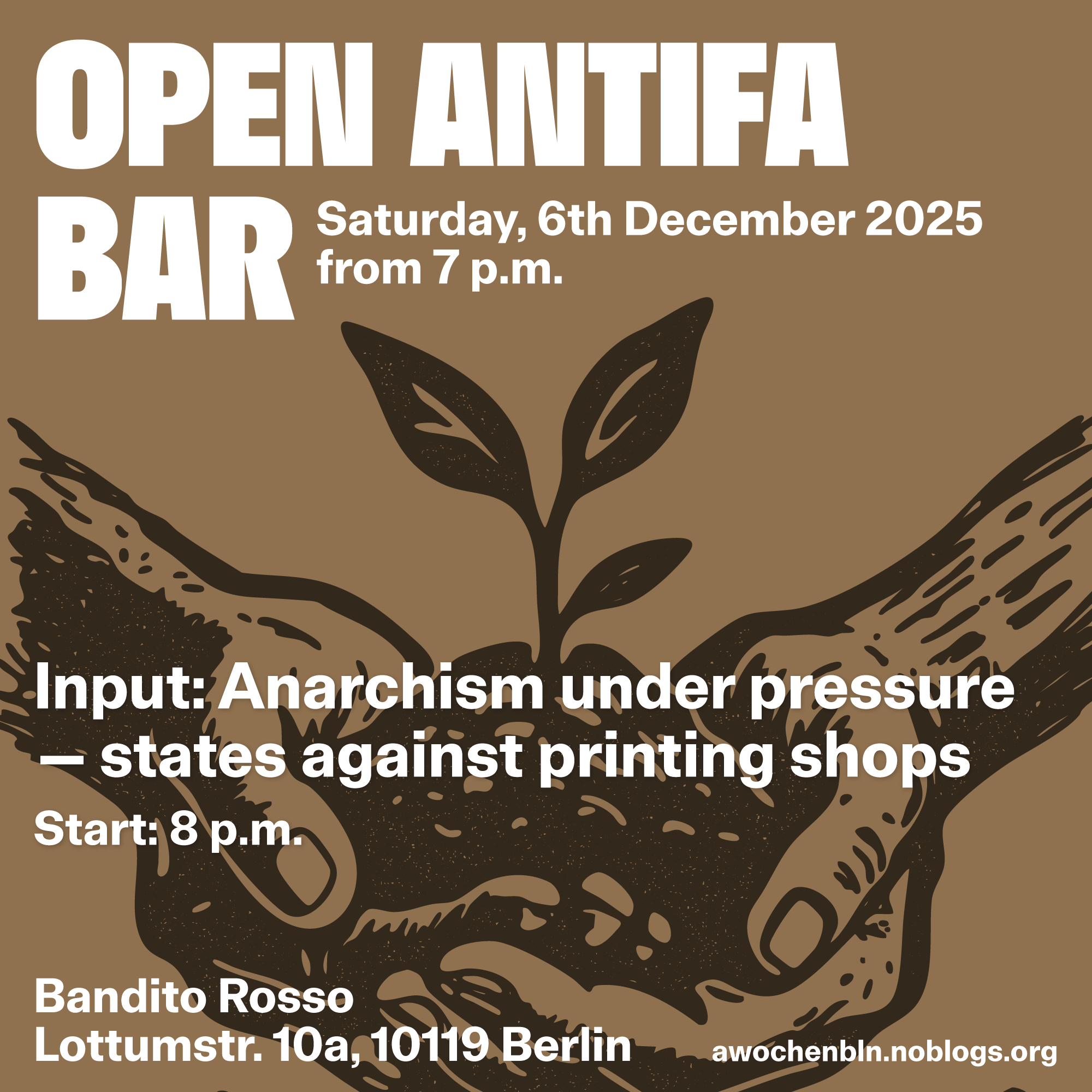 At about 8 p.m. there will be a presentation: Anarchism under pressure – states against printing shops.