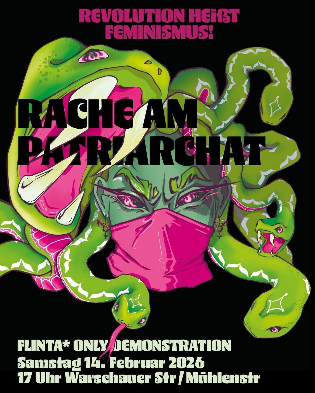 Und natürlich ist das kein allein deutsches Problem. Wir solidarisieren uns klar mit unseren Geschwistern weltweit. Ob in Rojava, im Iran, Sudan, Palästina oder anderswo, patriachale Gewalt versucht überall uns zu unterdrücken.